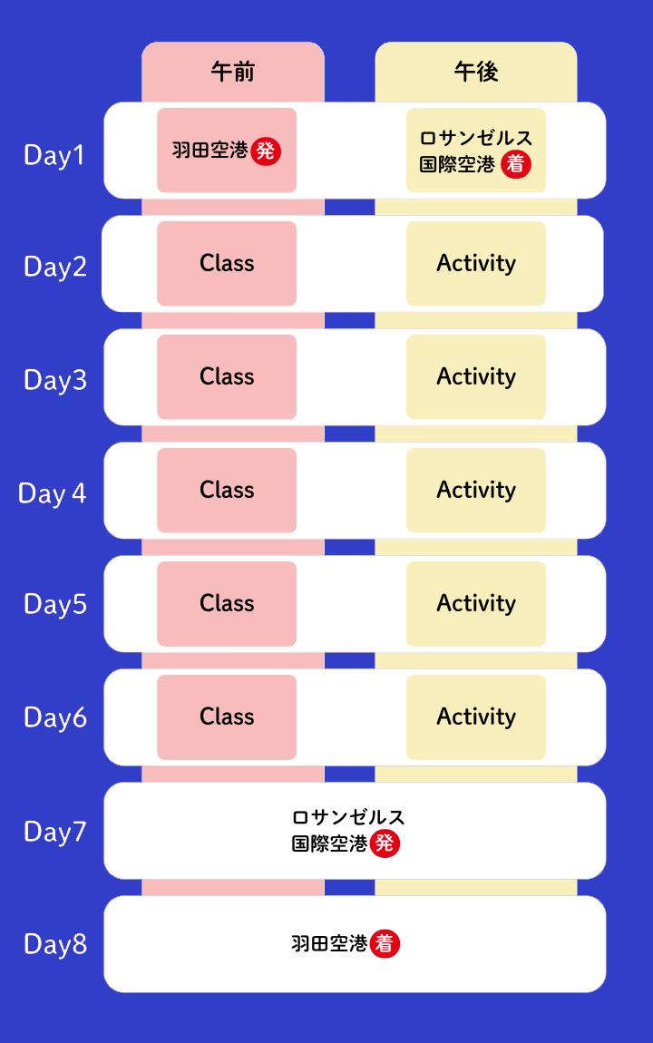 海外留学&ホームステイ8日間のスケジュール
